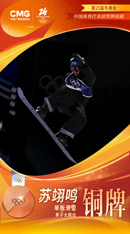 北京时间2月8日,苏翊在米兰-科尔蒂纳冬奥会单板滑雪男子大跳台决赛中,鸣获枚奖中国选手苏翊鸣获得铜牌,得米代表这是兰冬中国体育代表团在本届冬奥会获得的首枚奖牌。